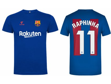 Dres Raphinha Barcelona z lehkého a prodyšného polyesteru. Ideální pro fanoušky FC Barcelony i sportovní aktivity. K dispozici v pánské i dětské velikosti.