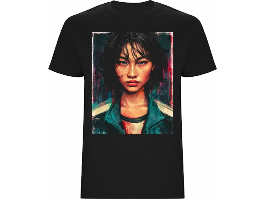 Stylové bavlněné tričko Squid Game Kang Sae-byeok je ideální volbou pro fanoušky seriálu i originálních motivů. Vyrobeno ze 100 % bavlny s gramáží 165 g/m² a hladkým úpletem, který je příjemný na dotek a odolný při nošení.