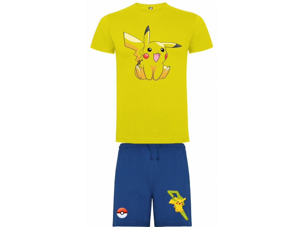 Příjemný bavlněný set, který se skládá s kraťas a trička, pro milovníky Pikachua - žlutá elektrická myš z říše Pokémonů!