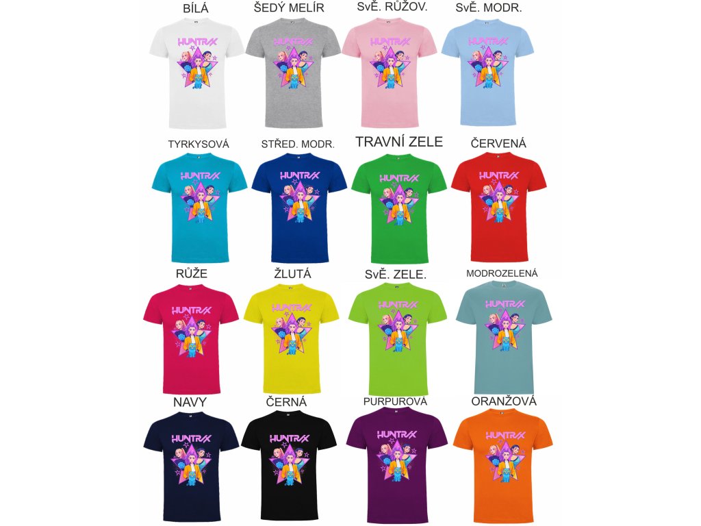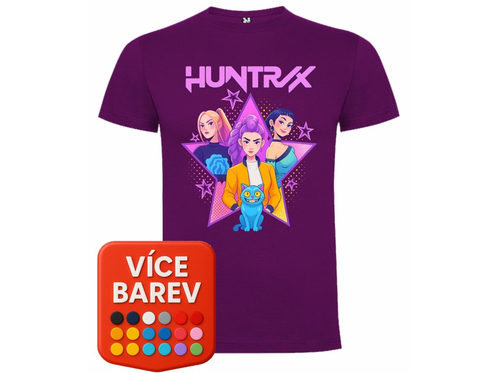 Stylové dětské bavlněné tričko Huntrix Lovkyně démonů s kvalitním DTF potiskem. Příjemné na nošení, odolné a dostupné v několika barvách i velikostech.