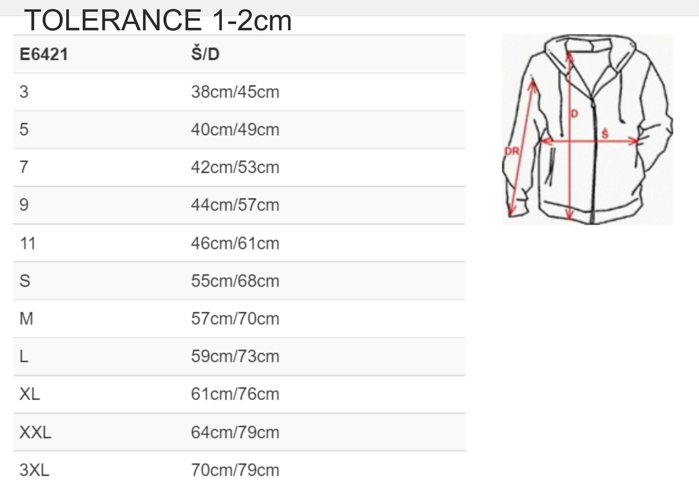 Mikina má praktickou kapuci, prostornou klokaní kapsu a bezpečný celopropínací zip. Lemy kapuce, kapes, rukávů i spodní části jsou z pevného žebrovaného úpletu 2×2, který drží tvar.