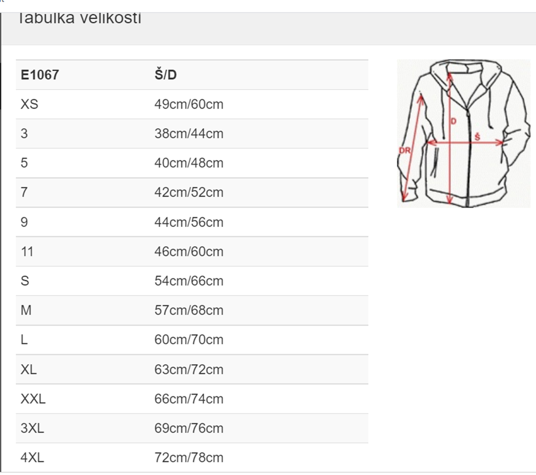 - široký rozsah velikostí XS–4XL