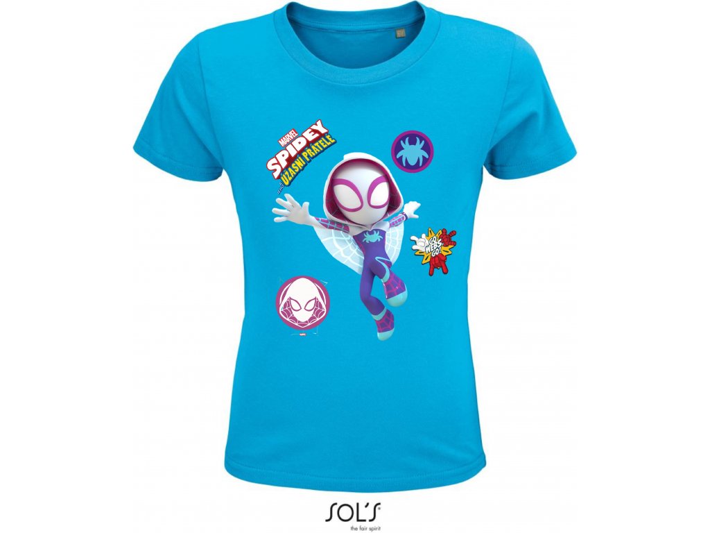 Tričko Spiderman - Spidey a jeho úžasní přátelé, s postavou Gwen Stacy, která hraje spider ženu.