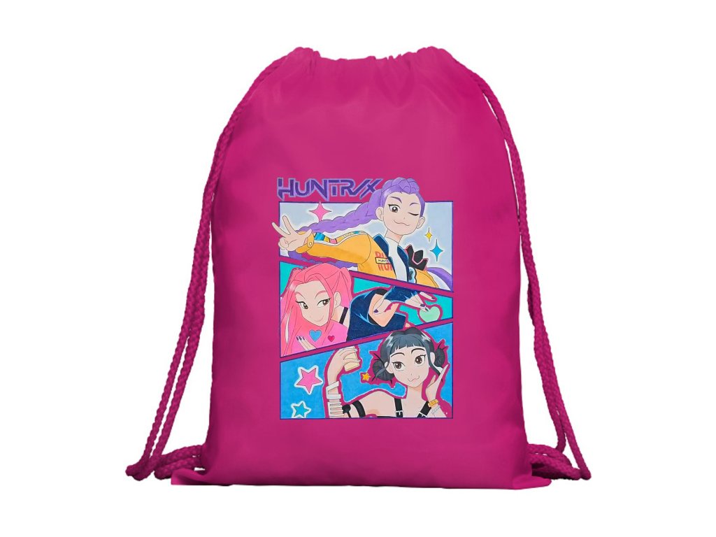 Moderní vak K-pop Lovkyně démonů potěší každou milovnici korejské hudby, anime motivů a výrazného designu. Díky lehkému provedení je ideální jako vak na záda do školy, na sport, kroužky i na každodenní nošení.